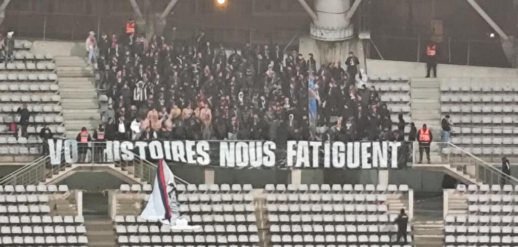 A ce jeu, le Paris Saint Germain a un univers de retard que manifestent ses Ultras, parqués au loin, en déroulant une banderole clairvoyante comme le sont ses chants : « Vos histoires nous fatiguent ».